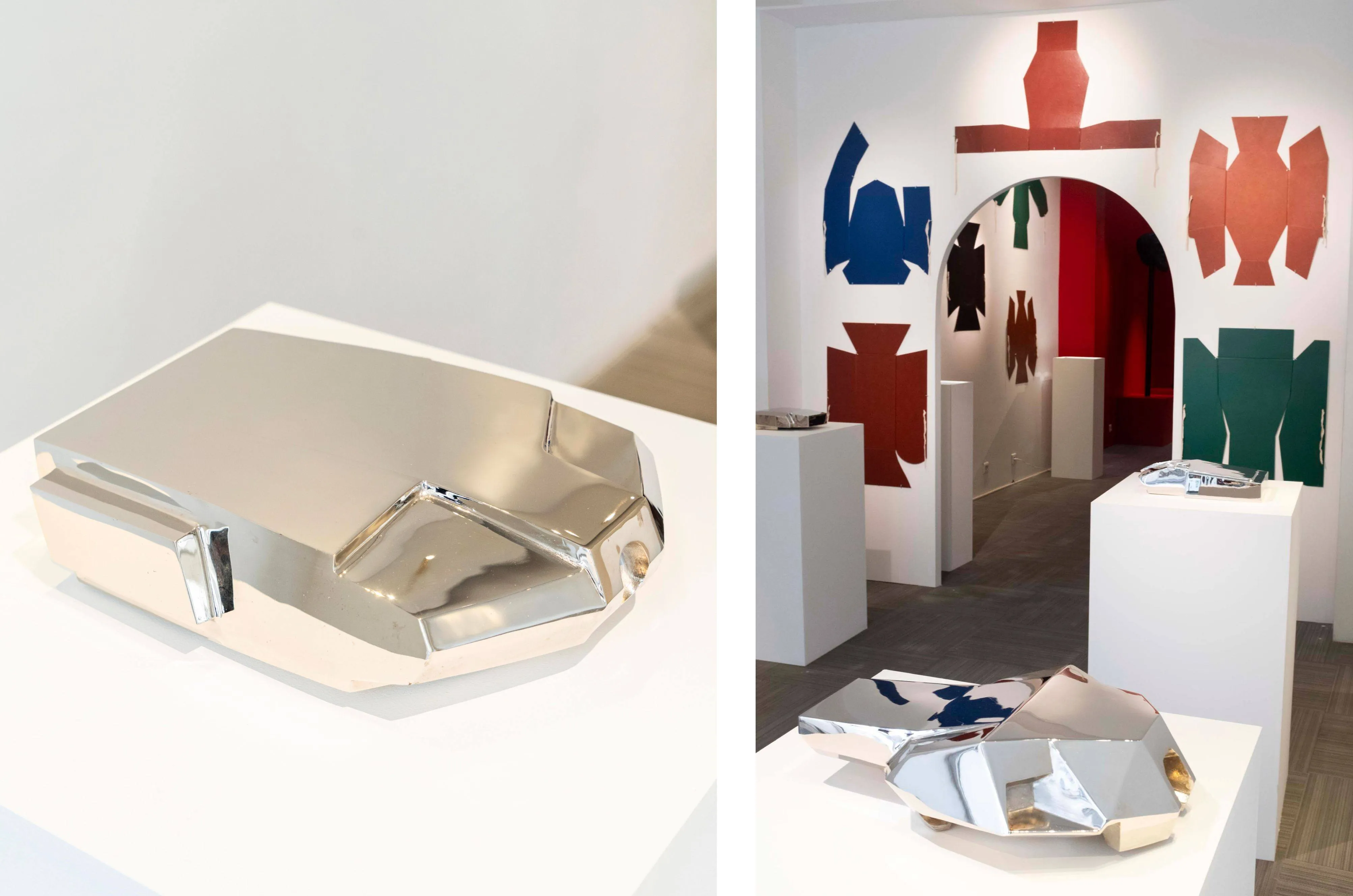 Thus, this seemingly decorative gadget is loaded with rich semantic baggage. By triggering the ‘Mandela effect,’ it awakens memories in the viewer (‘how we went with Dad to watch the parade on Red Square’), revives fears, and brings to mind Budapest, Prague, the Moscow coup of 1991 and the coup of 1993, when tanks fired directly at parliament, and even the burned Russian tank columns in Grozny and, more recently, near Kiev. However, all these flashes of meaning are not mandatory and are introduced by the viewers themselves. The main meaning of the object itself lies in denoting the cult of violence that has returned to our lives as one of the components of today's political culture. The ‘sacred’ quality of Osmolovsky's “towers” that emerges in the process of perception — as cult objects of worship of violence — brings to mind a similar effect in Jeff Koons' ‘Sacred Heart.’ For some, this heart symbol is just a key chain or a necklace pendant. For others, it is an ex voto and a gift of gratitude to the Virgin Mary or the burning heart of Christ. Osmolovsky deliberately avoids the emotional crescendo evoked by the powerful increase in scale, a favourite technique of Jeff Koons. But he uses methods similar to Koons's to treat his subject matter – mirror polishing, dust removal, the shine of precious metal. They emphasise the transcendent nature of the “spiritual” object.