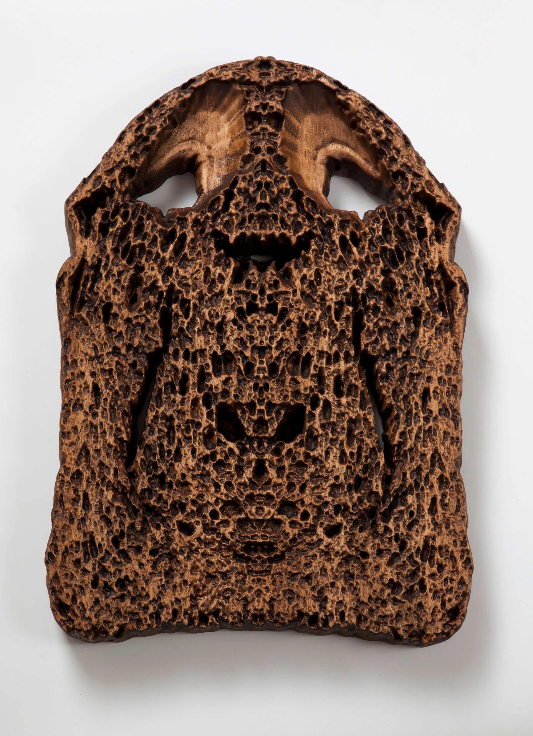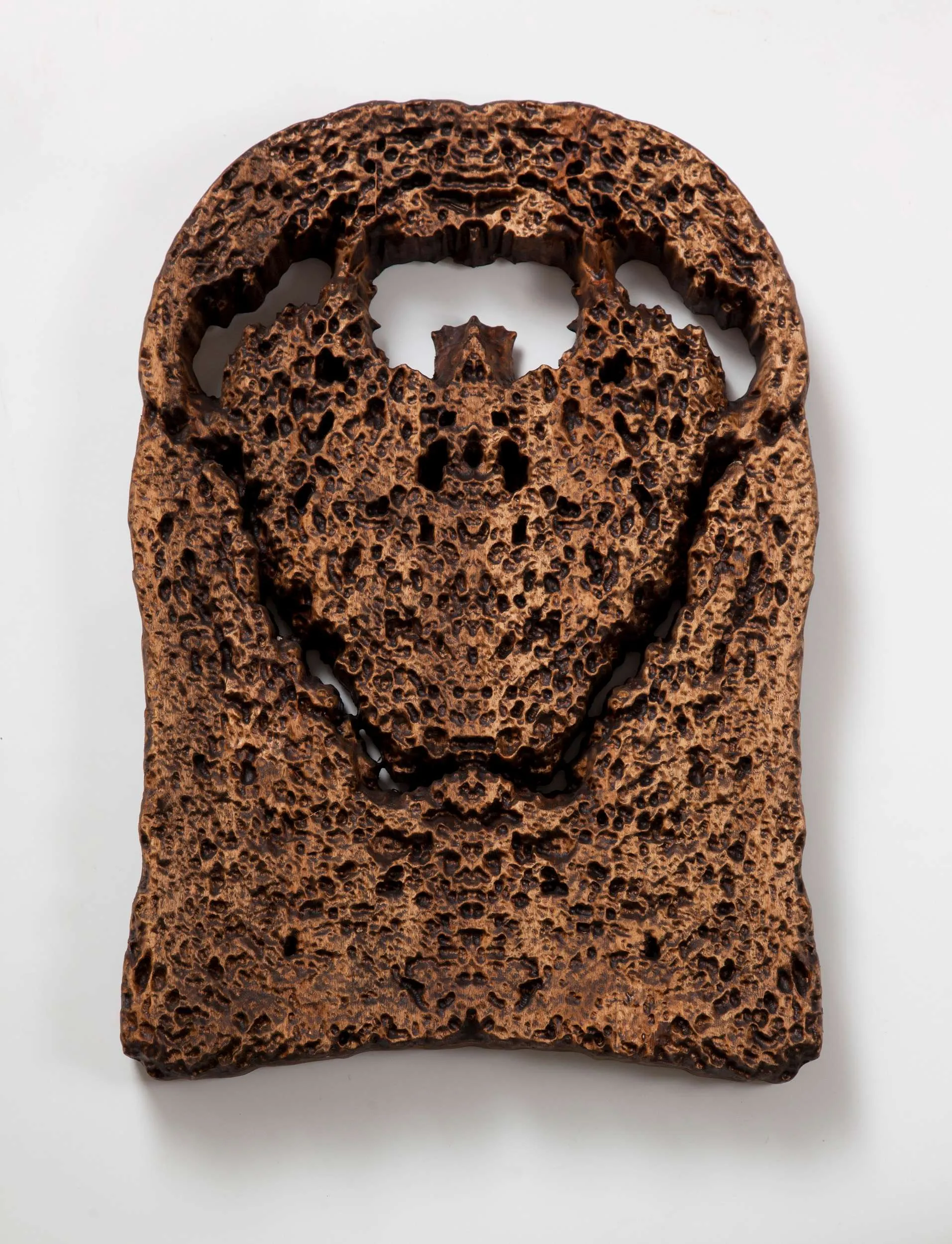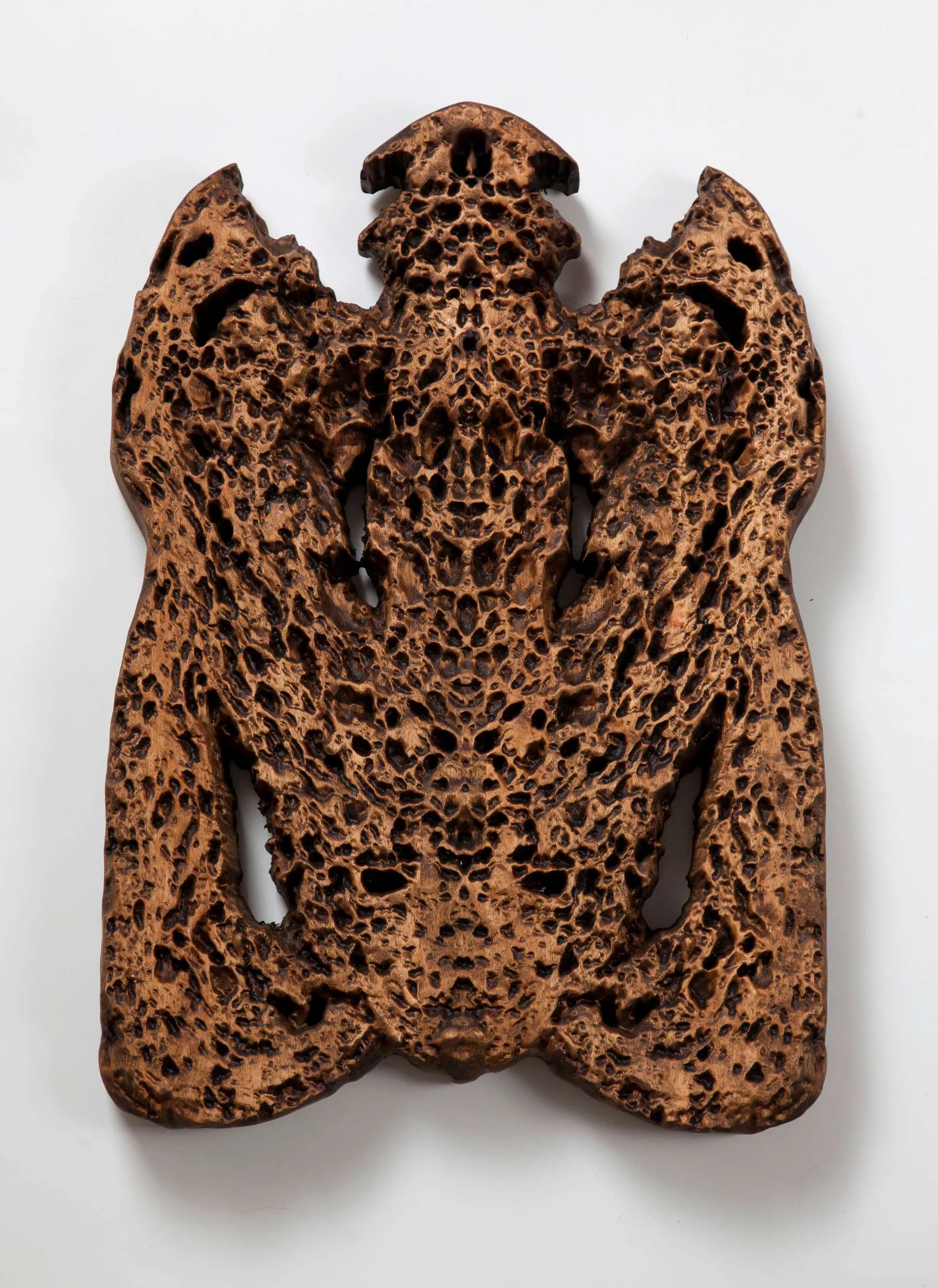 If we analyze the "bread" series from the standpoint of the primary base component, the most important thing in them is the texture of bread itself. What is important is the chaos of forms, through holes, cavities, cracks that occur at the surface of slice. Texture of bread represents the concept of pure chaos. There isn't any visible point in the bread, which would be similar to another. Here the main role plays not the problem of texture as it is with its "beaty" and tactile "sensuality", but a facture expressing the idea of CHAOS. For example, Jackson Pollock was creating chaos in his works by dripping. His work (its important component) was to create an ABSOLUTELY chaotic NONFIGURATIVE image. Texture of bread originally contains this chaos. Therefore, the next step is to challenge it. The texture is duplicated, repeated (often on the central vertical axis of symmetry), what creates a "miraculous" effect - inimitable, in principle, chaotic matter is thoroughly and precisely repeated. From one point of view, this repetition "hangs" the concept of chaos. From the other point, it places the object to the category of heraldic form, which usually has a central vertical axis of symmetry. Symmetry creates a METAPHOR (an image) of an artwork as a self-contained visual object, which is creating inside its own forms its own borders - a frame.