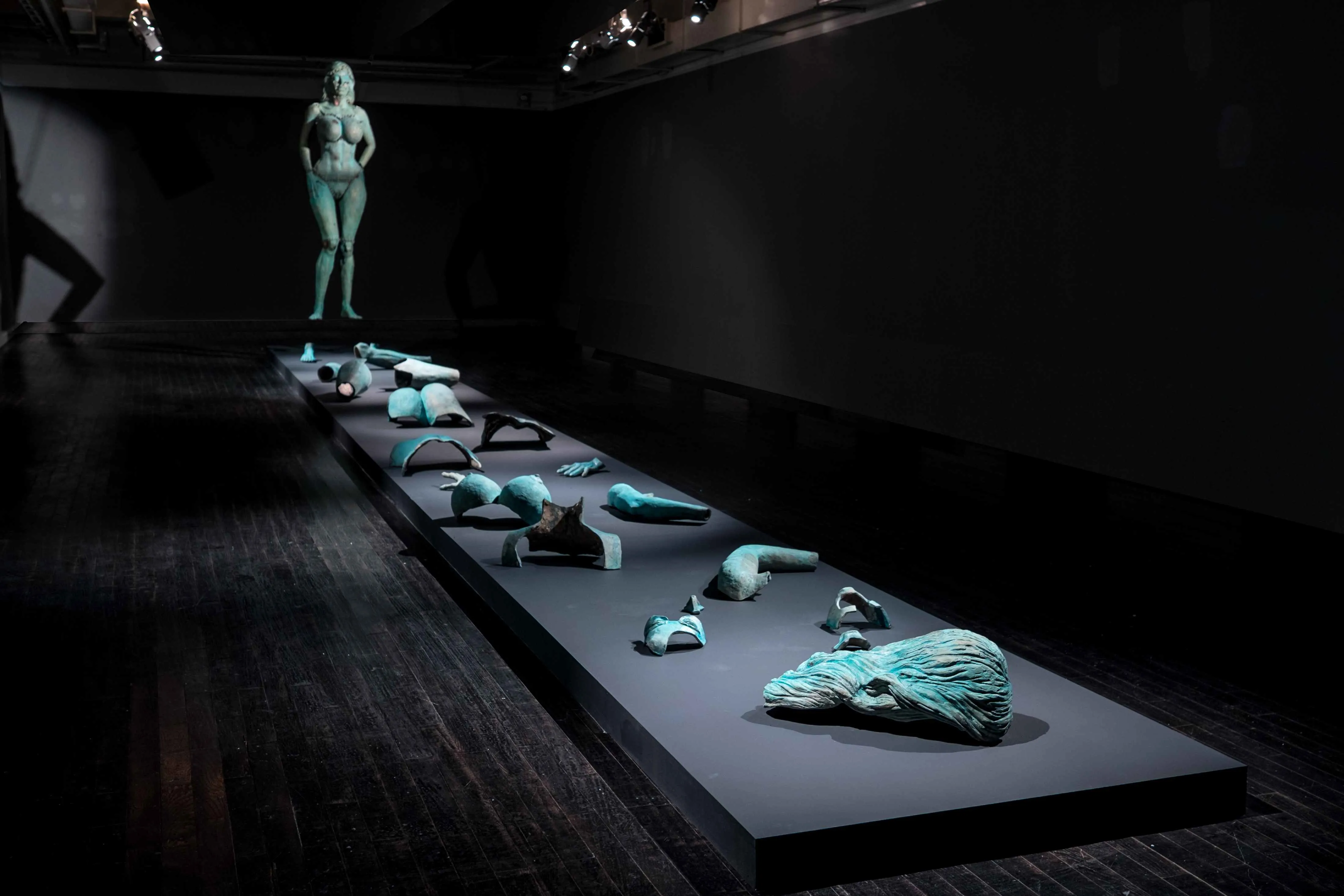 The real “added element” in this work becomes a combination of different parts of the body that must be assembled in the style of Frankenstein, not concealing but instead emphasizing the joins of the parts that form the “whole.” It was also planned that at least one more set of the different parts would be cast and they would be laid out in a dismantled form at the feet of the sculptural image.