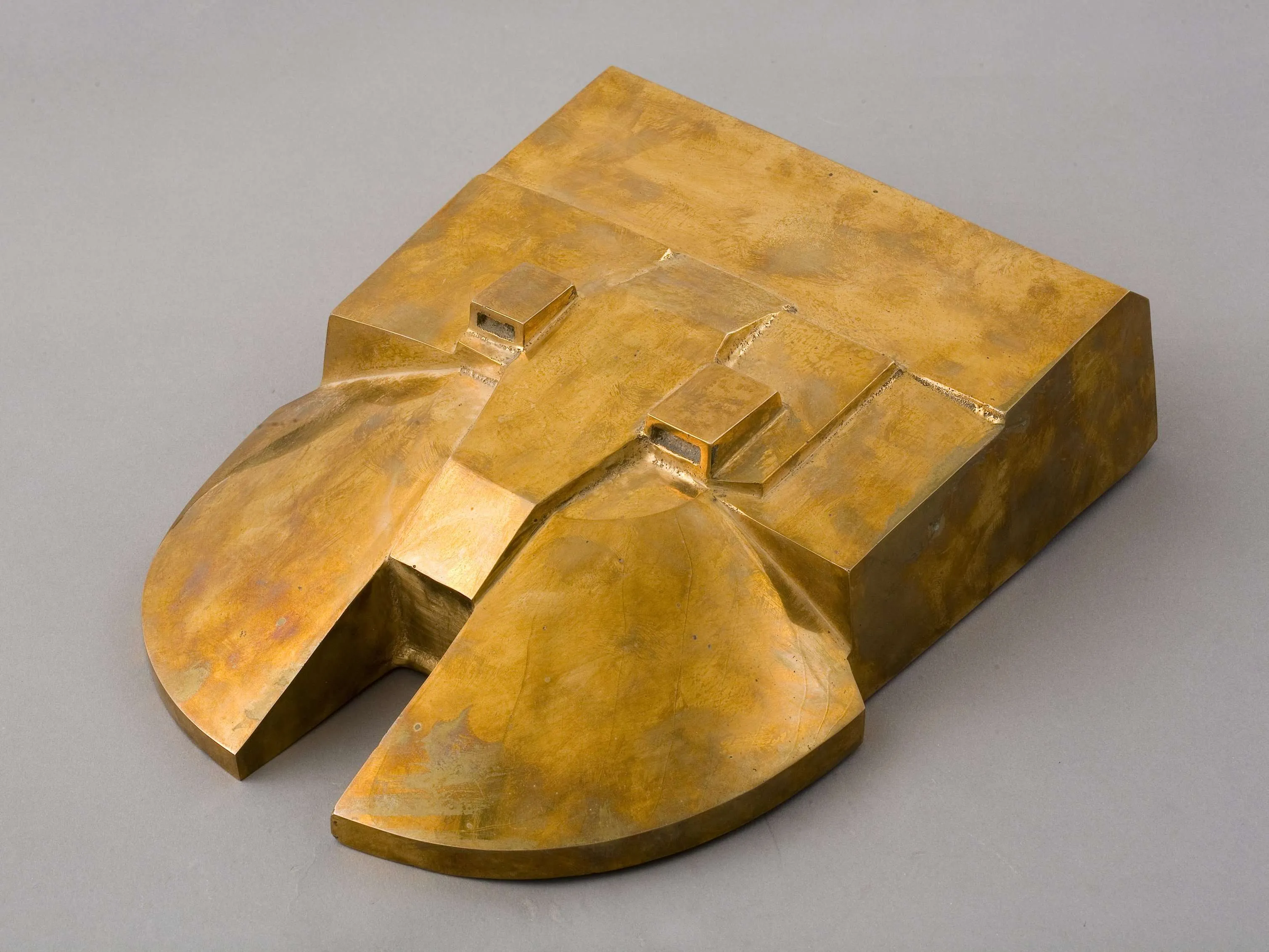 Devoid of their context and function, the turrets are hardly recognizable and thus appear almost abstract, but this provides an opportunity to look at them as pure forms, ones that are both brutal and refined. They now possess decorative qualities; their smooth, polished surfaces are aesthetically pleasing, though as originally industrially manufactured for a utilitarian purpose, were not meant to be. Even the material itself - bronze, traditionally used for sculptures - emphasizes this effect.