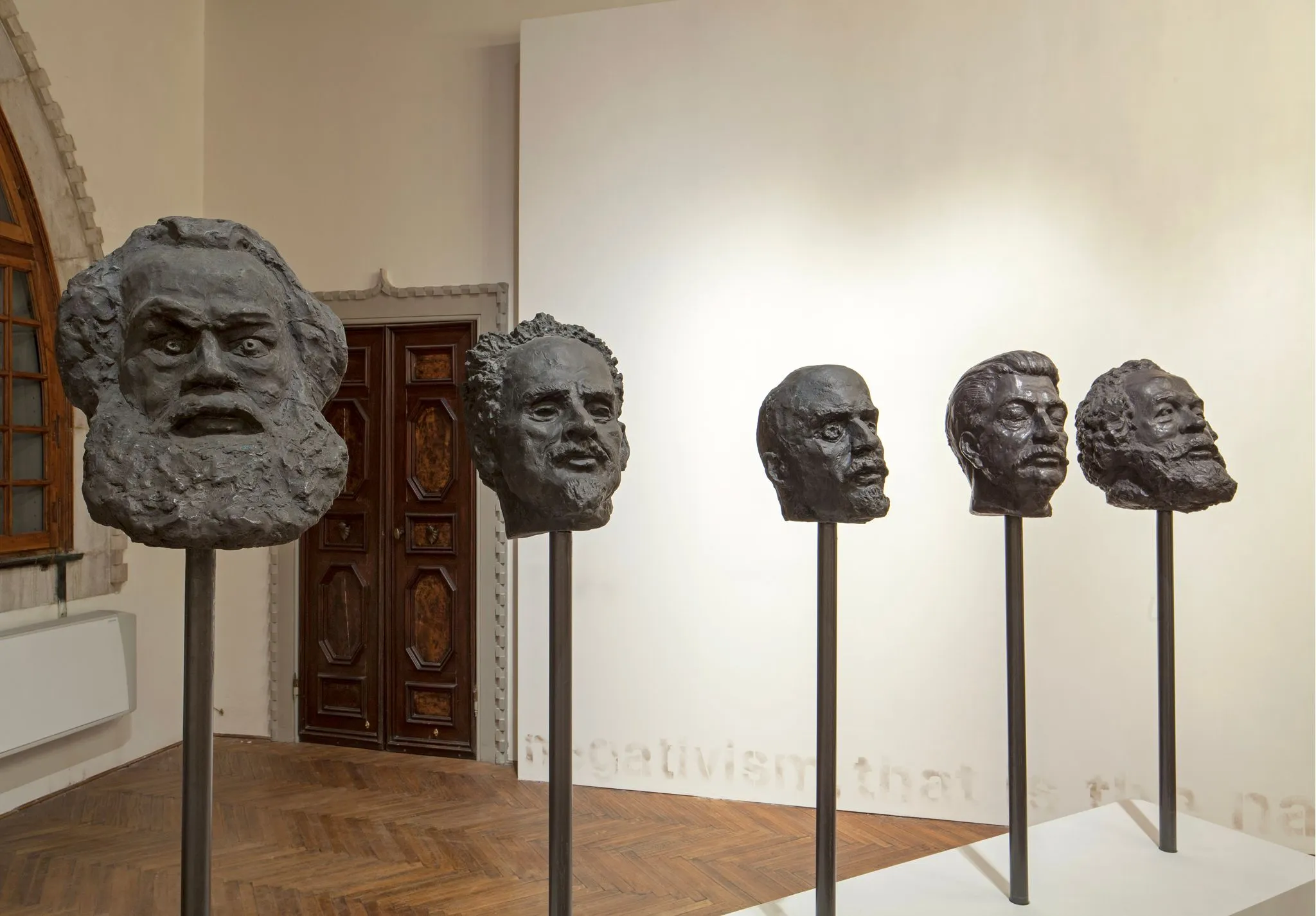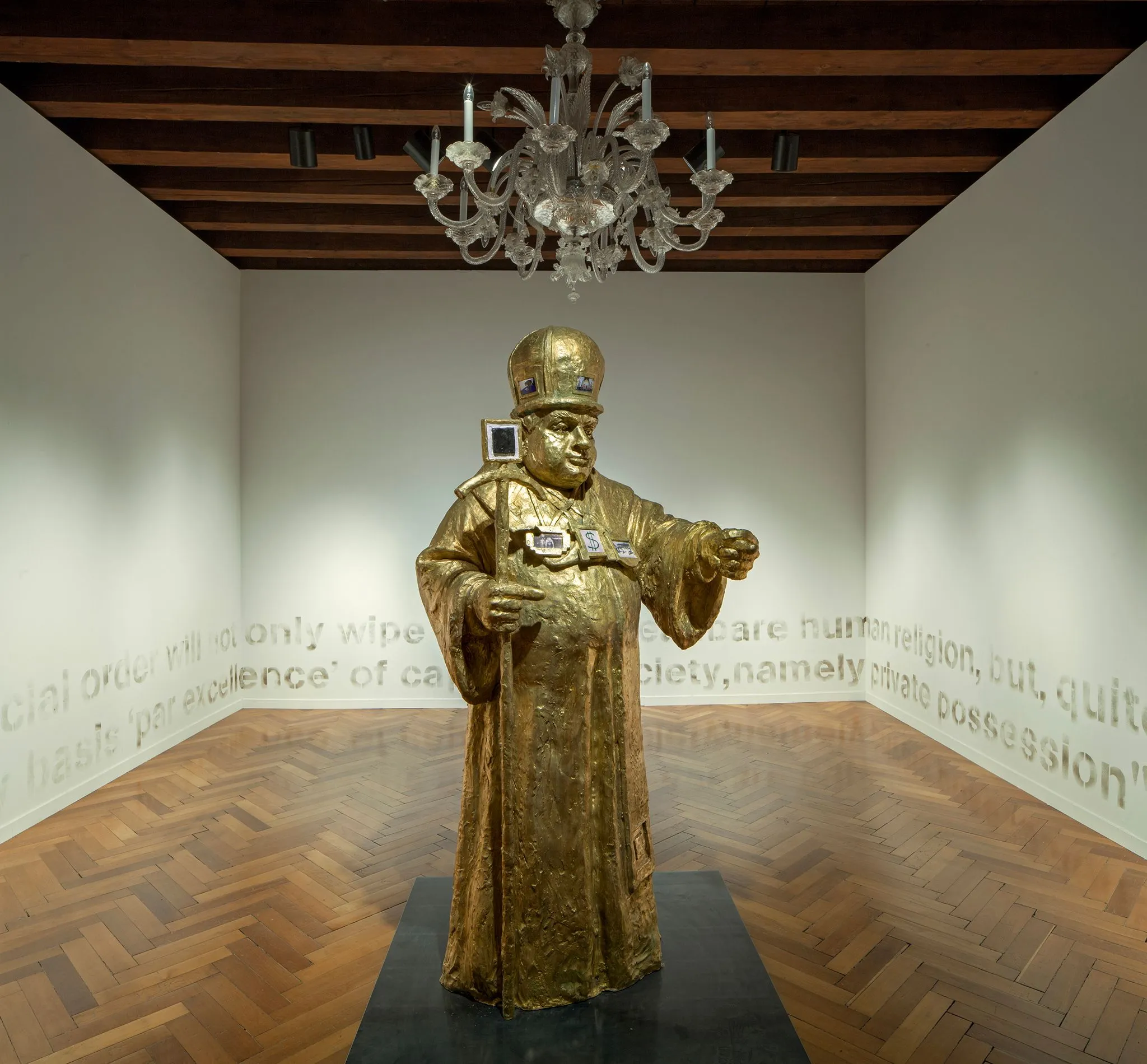 While the work of Althamer and Osmolovsky has been included together in larger group exhibitions – at Manifesta 3 in Ljubljana in 2000, where the artists met for first time, and again at the survey of post-communism ‘Ostalgia’ at the New Museum, New York in 2011, this fuller survey of their work allowed certain affinities to be elucidated. While the exhibition revealed many striking overlaps in Althamer’s and Osmolovsky’ s projects, such as their marked engagement with sculpture, combined with more socially and politically-committed modes of art making, and a complex relationship with the history of the Soviet Union and Eastern Bloc, just as important were the differences between them and the independent nature of their projects. To this end, it was a deliberate choice to vary the proximity with which Althamer’s and Osmolovsky’s work was shown together, with both of them dispersed over the three floors of the palazzo, sometimes adjacent and in direct dialogue with each other, but more often separate and the links between one work and another and each artist being made as the visitor walked among the rooms of the Tre Oci. If sculpture, assemblage, video, and more conceptual and politically engaged modes of making art were all present in the exhibition, ranging from the monumental to the ephemeral and slight, this gestured to some of the key features underpinning Althamer’s and Osmolovsky’s endeavour. A case in point is the irreverent attitude extended towards organised religion, as in an early performance by Althamer from 1991 called Cardinal, which was not included in the exhibition, and most obviously in the work Osmolovsky created for this exhibition, Golden Self-Portrait of 2013, which saw him take on the guise of the Patriarch of the Russian Orthodox Church.
