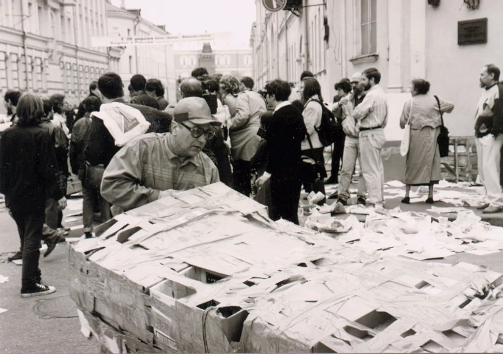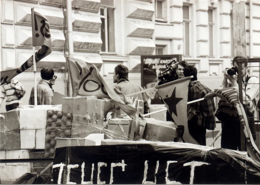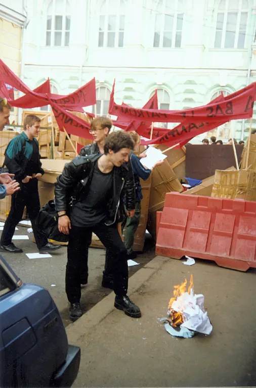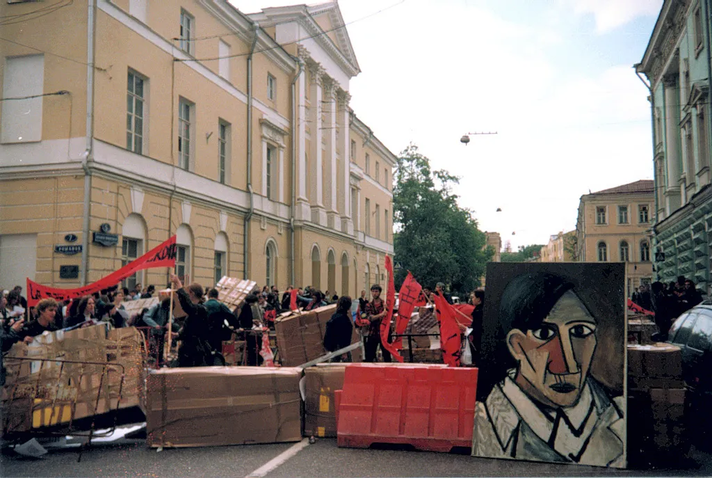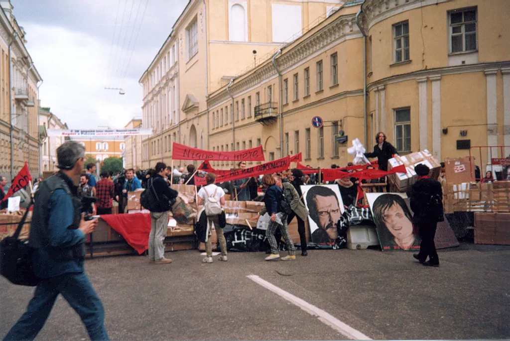 23 мая 1998 года состоялась акция «Баррикада» - самая массовая акция московского арт активизма. Пустыми картонными коробками, специально подготовленными для такого случая, была перекрыта Большая Никитская улица. Около 300 человек в течение трех часов удерживали баррикаду буквально в 200 метрах от Кремля.