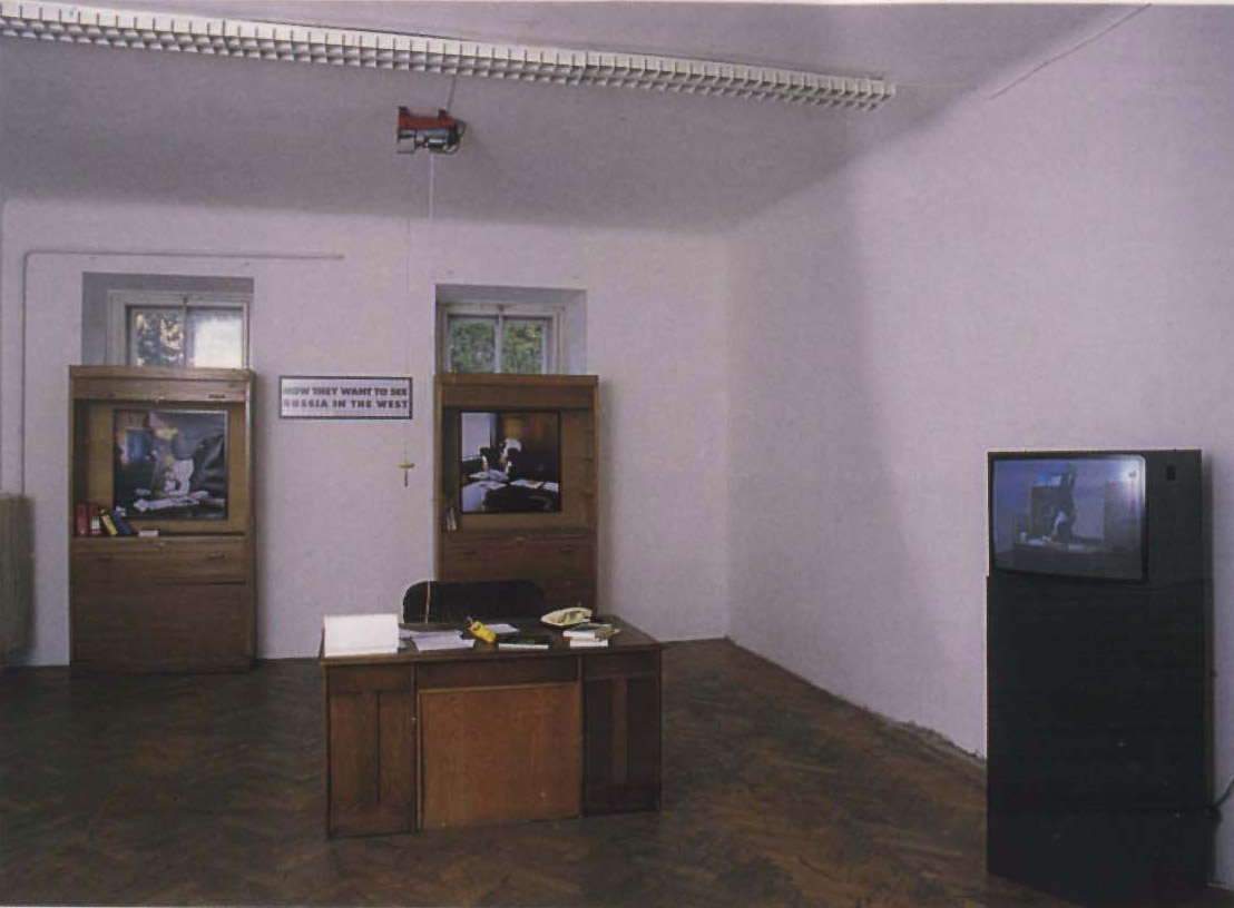 Куратор выставки под названием «Zonen der Ver-Sturung» - «Зона Опасности» была Silvia Eiblmayr.Руководствуясь серией фотографий, которые я сделал в кабинете начальника Штази в Берлине в 1995 году, я развил тему клерка в офисе реализовав на этой выставке перформанс «Какой хотят видеть Россию на Западе». Выставочное пространство было оборудовано мной под офис с помощью соответствующей мебели, типичной для советского времени и переходного постсоветского периода (о евроремонте для государственных офисов тогда еще только мечтали).На заднем плане стояли шкафы, в которых экспонировались постановочные фотографии с клерками в безумных позах.Я сидел за деревянным столом, стоящим в центре комнаты, и был привязан тросом за ногу к лебедке, установленной на потолке. Время от времени лебедка поднимала меня за ногу, вверх ногами, к потолку. Во время подъема я кричал “ Go, go danger!!!”