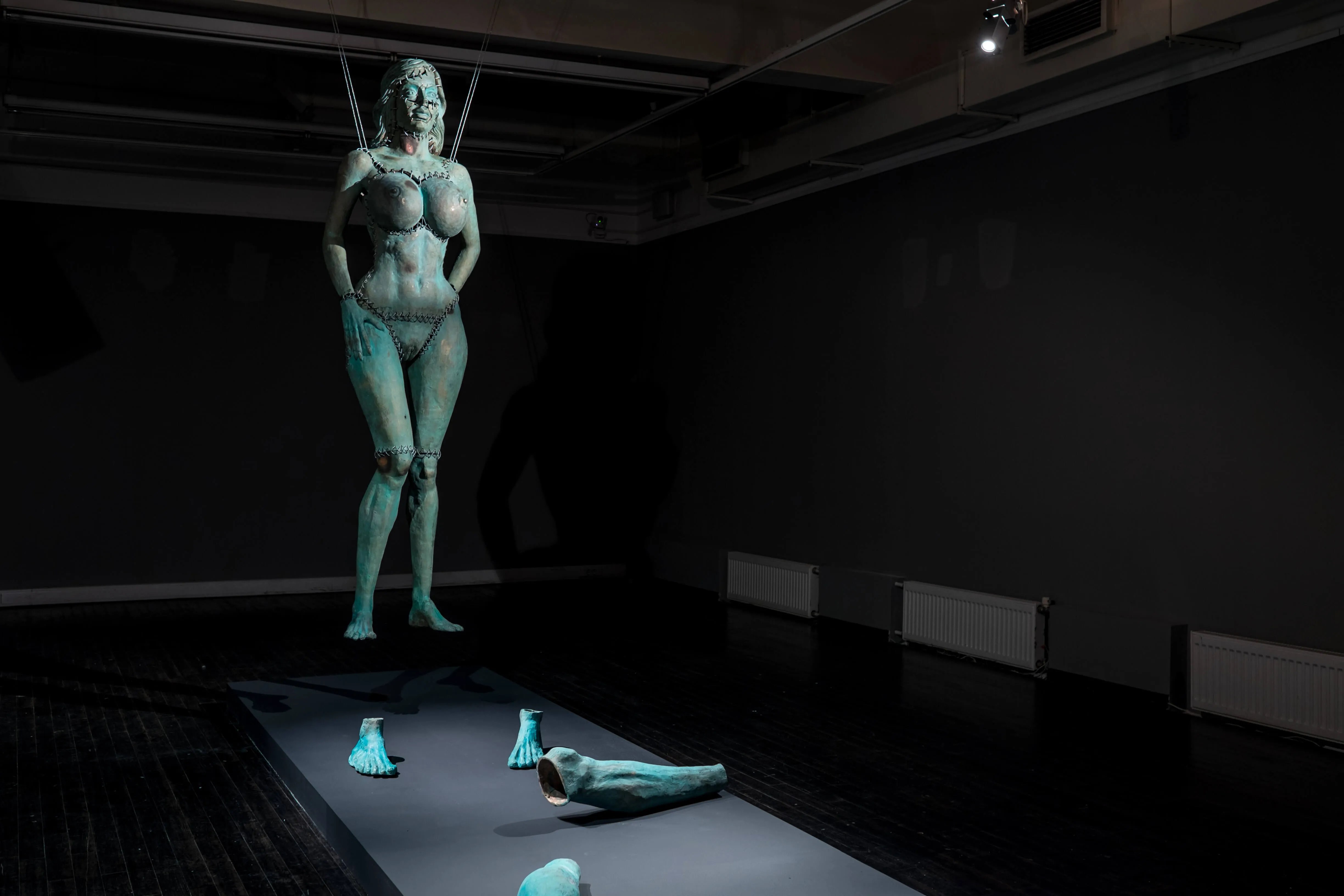 Скульптурная работа «Украинка», еще не имея этого названия, была задумана мной давно. Когда в 1998 году я формировал подборку материалов Ситуационистского интернационала в журнале «Радек», в качестве красноречивой иллюстрации их метода критики я выбрал коллаж женского портрета, сделанный из «самых красивых» частей лица медиазвезд 60-х годов. Портрет этот назывался «Красота социологии» — мы видели фоторобот женщины, определенно страдающей какой-то формой умственной отсталости. Демонстрацией этого коллажа ситуационисты противопоставляли «диалектическую игру целого лица» «диктатуре фрагментов», показывая, что подлинная красота не имеет ничего общего с фрагментированной социологией предпочтений. Чуть позже я узнал, что подобные манипуляции делали и выдающиеся художники античности. Легенды о подобных экспериментах сохранились до сего времени. Моя идея заключалась в простом осуществлении античной легенды и ситуационистской критики, выполненной в расширенном формате фигурной скульптуры социологически «самой красивой» женщины нашего времени.