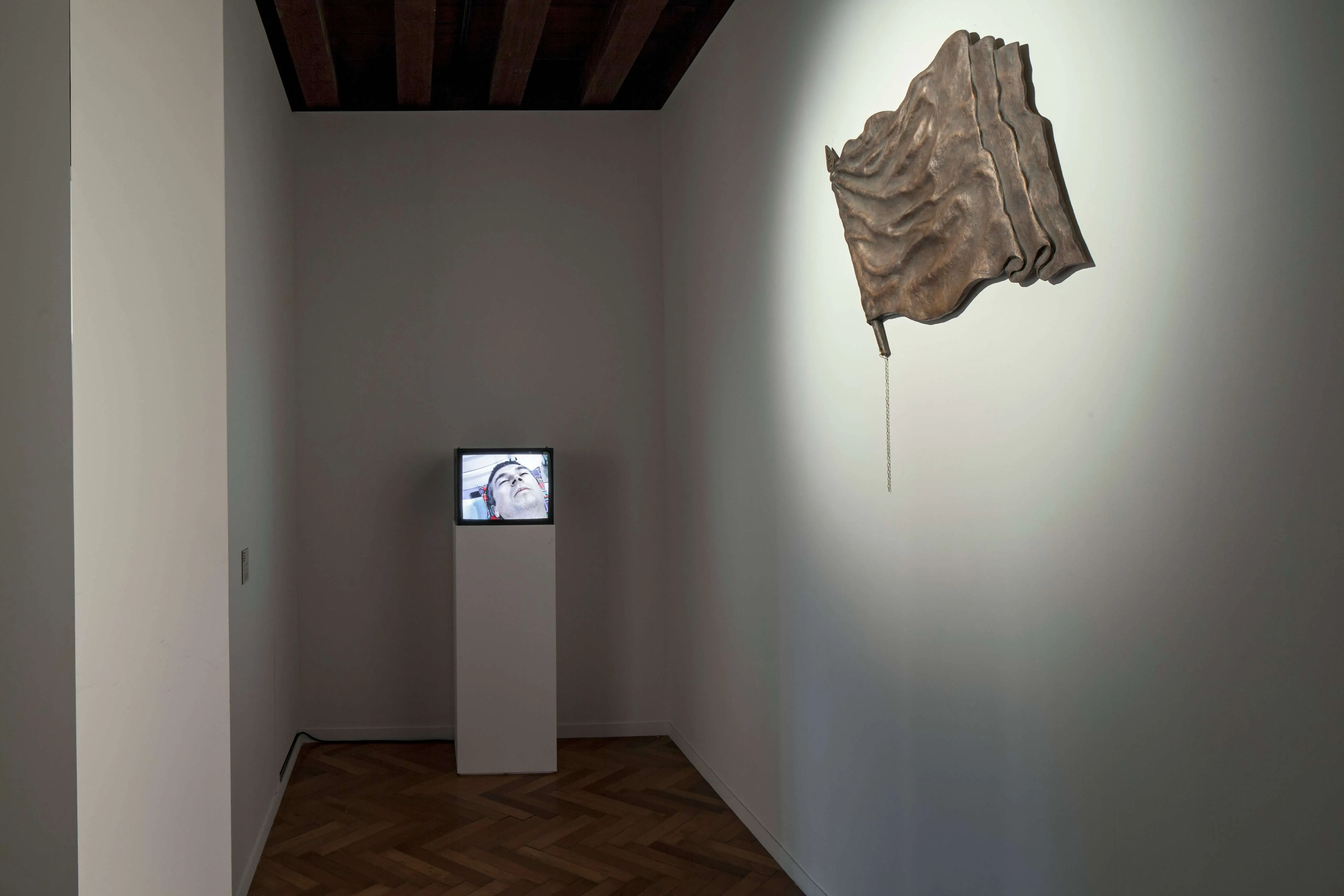 Чтобы уравновесить эту работу, Альтхамер представил на выставке скульптуру Парис – новую монументальную работу 2013 года, выполненную в бронзе, демонстрирующую его увлеченность этим видом искусства. В жанре скульптуры часто присутствует элемент сотворчества, так же, как и в этой работе, изначально представлявшую собой композицию, созданную несколькими парами рук. Эта идея также нашла свое отражение в масштабной инсталляции художника 2013 года Венецианцы, которую он одновременно выставил в Арсенале, на основной площадке Биеннале.
