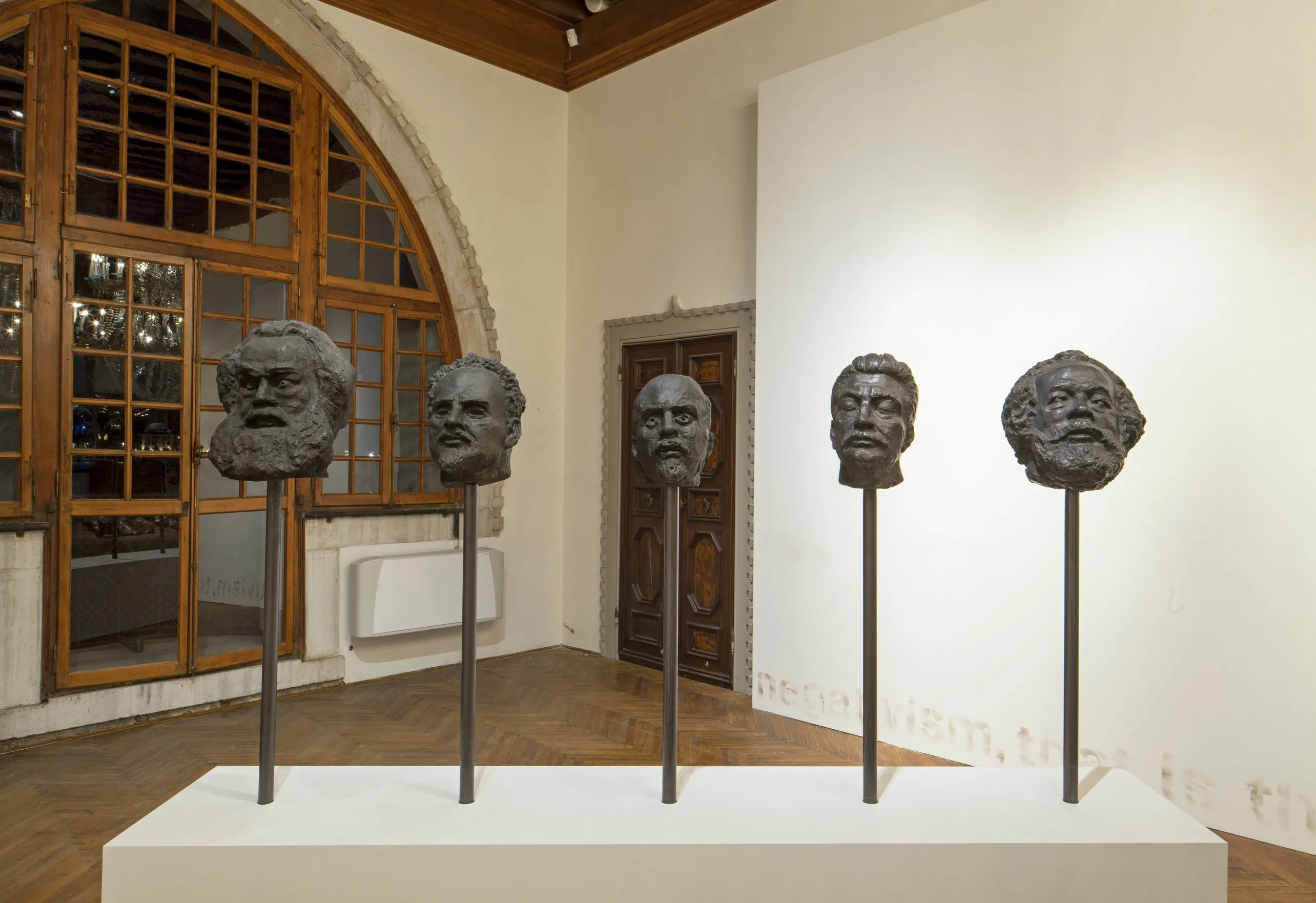 Хотя работы Альтхамера и Осмоловского ранее уже выставлялись вместе в рамках крупных групповых выставок — на «Манифесте-3» в Любляне в 2000 году, где художники встретились впервые, а также на выставке «Остальгия», посвященной посткоммунистическому периоду, открытие которой состоялось в Нью-Йоркском Новом музее в 2011 году, — именно эта более полная ретроспектива позволила выявить определенное сходство. Хотя выставка показала множество поразительных совпадений в проектах Альтхамера и Осмоловского — явное увлечение скульптурой в сочетании с более социально и политически ангажированными формами художественного творчества, а также сложные отношения с историей Советского Союза и Восточного блока — не менее важными были различия между ними и независимый характер их проектов. Было решено осознанно влиять на степень близости, возникающую между выставляемыми вместе работами: обе серии были распределены по трем этажам палаццо, иногда располагаясь рядом и вступая в непосредственный диалог, но чаще выставлялись отдельно. Связи между работами и художниками становились очевидными по мере того, как посетитель проходил залы экспозиции Tre Oci.