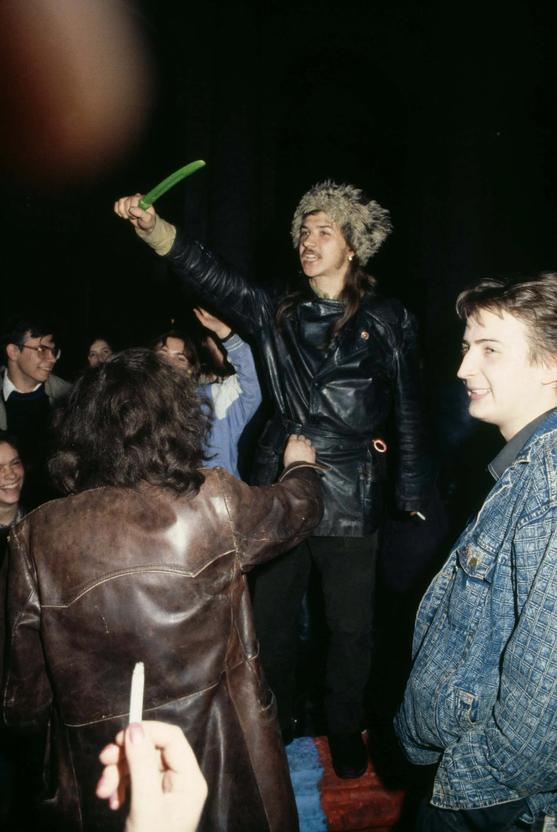 Когда закрывалась наша выставка, встал вопрос о разборки экспозиции и камень надо было так сказать «утилизировать». Весил он 300 кг. Через пару дней открывалась ярмарка современного искусства «АртМиф – 2» в Манеже. Вот и возникла идея провести перформанс. Мы взяли машину, перевезли объект и выбросили его перед входом в Манеж. Там же мы провели митинг, используя камень в качестве трибуны. Далее он был оставлен в назидание будущему поколению. В принципе эта акция одна из первых критических акций 90-х.