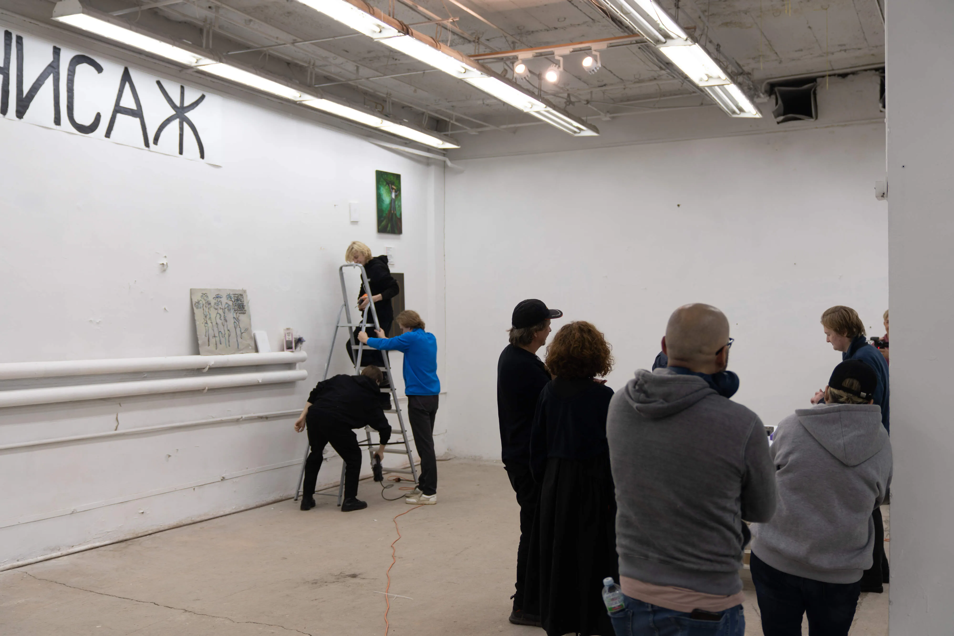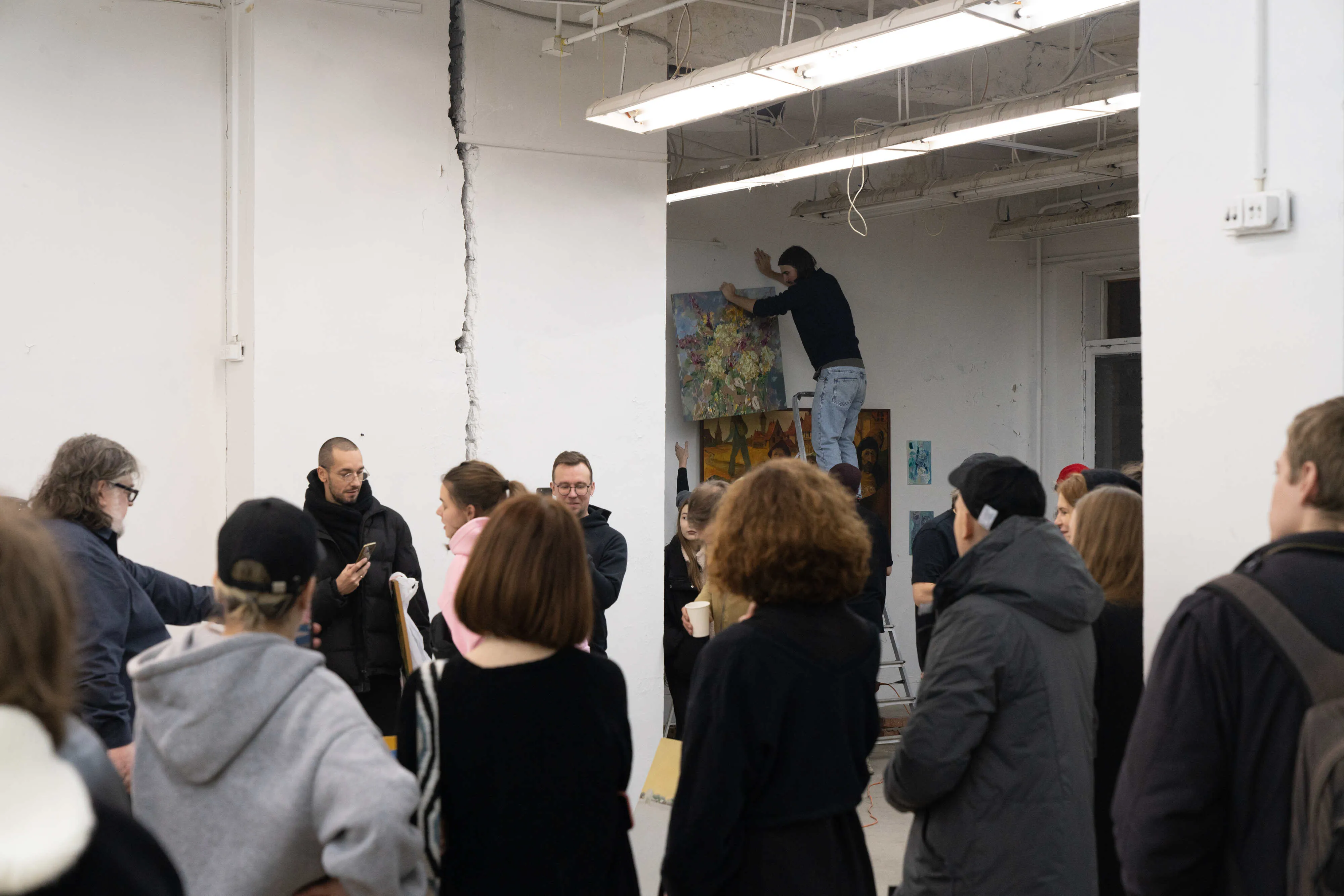 В галерее «Электрозавод» существует гигантская трещина, проходящая поперёк стены, которая и стала разделительной границей между покрытыми и не покрытыми лаком картинами — то есть между Вернисажем и Салоном отверженных. По ходу действия происходил разговор о современной живописи с объяснением сделанного выбора.